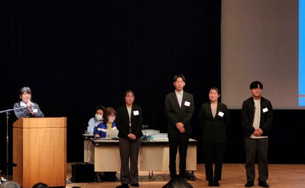 今回は、この春入社予定の営業職・研究開発職の内定者の皆さんにもご参加いただき、壇上にてご紹介させていただきました。